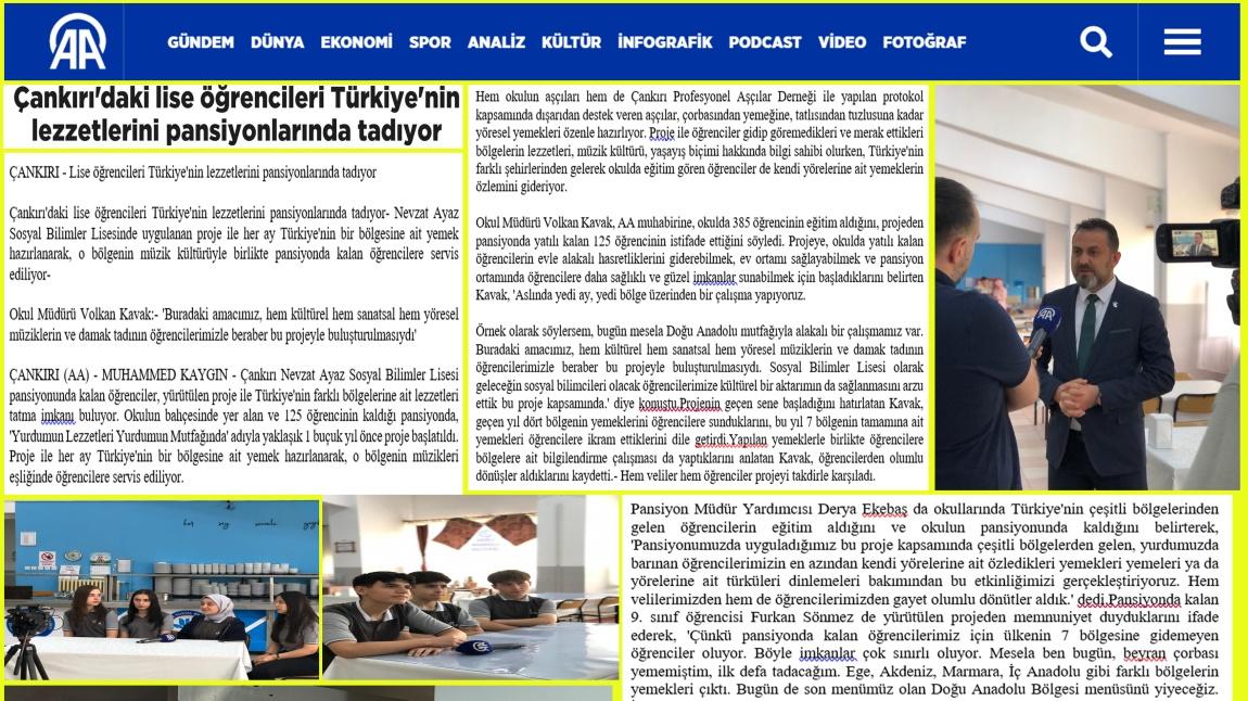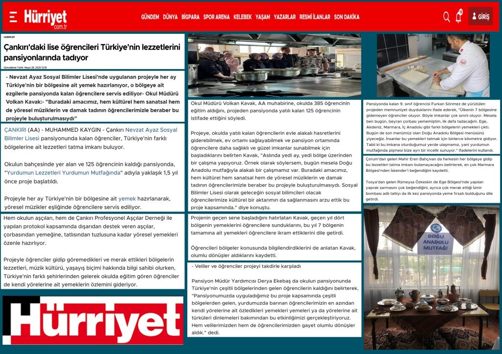 Yurdumun Lezzetleri Yurdumun Mutfağında projemiz Ulusal basında örnek çalışma olarak yer aldı.